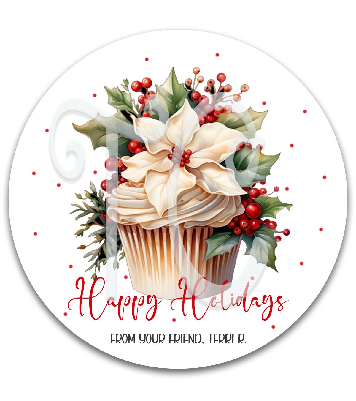 🩷 Sealed with Love – Personalized Poinsettia Cupcake Christmas Sticker Labels
