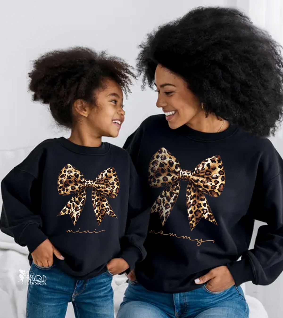 Cheetah Coquette Bow Sweatshirt - Cheetah Print Matching Mommy and Mini Me Outfit