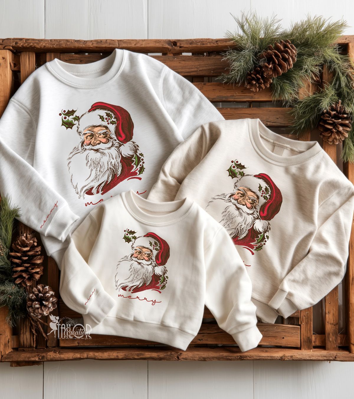 Vintage Santa Claus Merry Sweatshirt - Merry Christmas Matching Sweater Hoodie