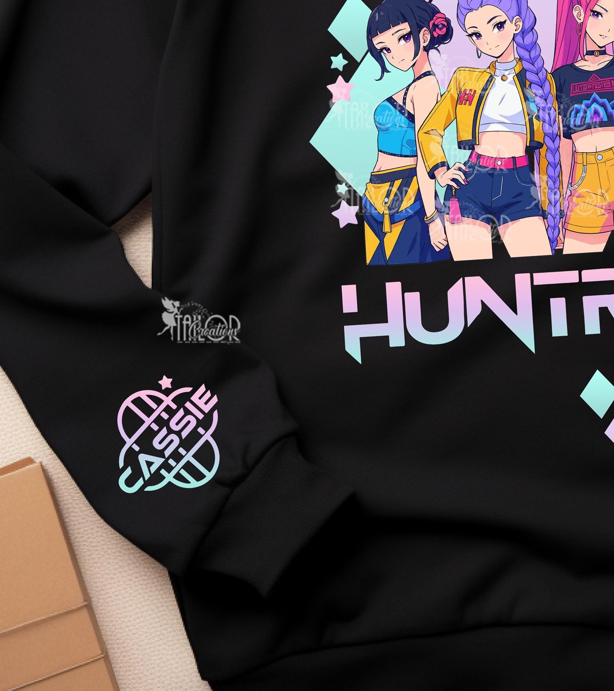 Step into the spotlight with the exclusive K-pop Demon Hunter Huntrix crewneck sweatshirt. This unique Kpop Inspired Merch is inspired by the iconic trio Mira, Rumi, and Zoey. This premium personalized sweatshirt or hoodie combines a cute, bold design with high-quality style and comfort. Perfect for fans who want to channel confidence, style, and supernatural strength.