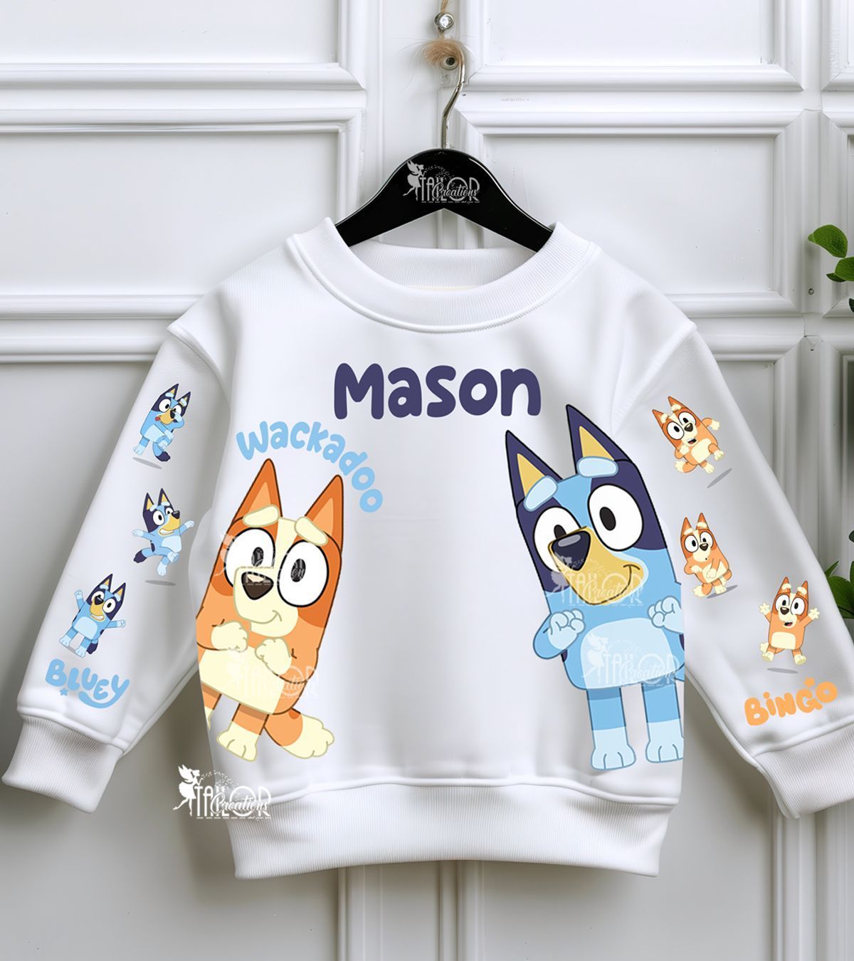 Bluey and Bingo Custom Name Crewneck Sweatshirt Toddler/Kids - Bluey and Bingo Gift Ideas