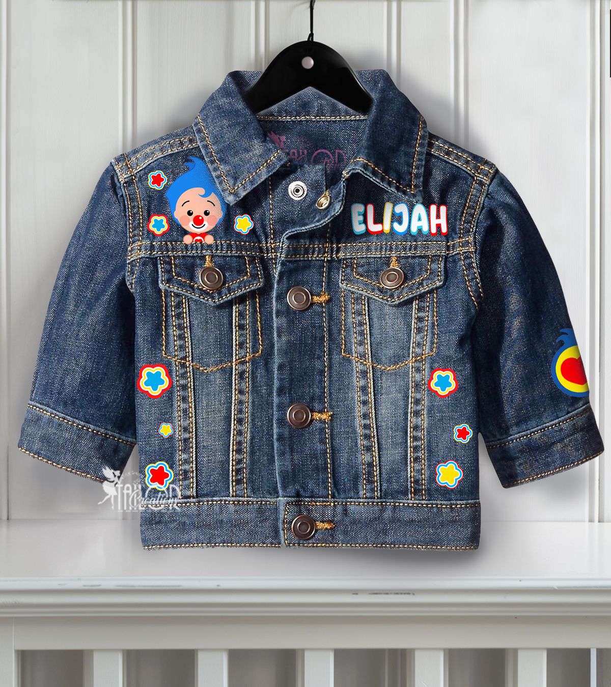 Plim Plim Denim Jacket - Payaso Payasa Custom Name Para Nino - Chaquetas de Plim Plim