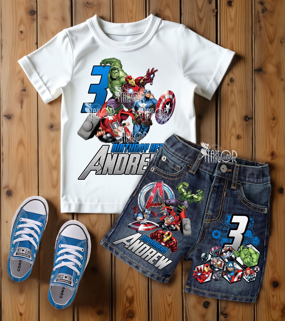 ⭐ Step into the action-packed world of Disney Marvel Avengers with these exclusive custom denim jeans pants for kids. Designed for young heroes, choose from your choice custom of jeans or overalls. Denim is uniquely designed embellished with vibrant Avengers-themed graphics, front and back. Featuring Iron Man, Thor, Hulk and Captian America, personalized with your child’s name, or any wording of your choice for that extra heroic flair.