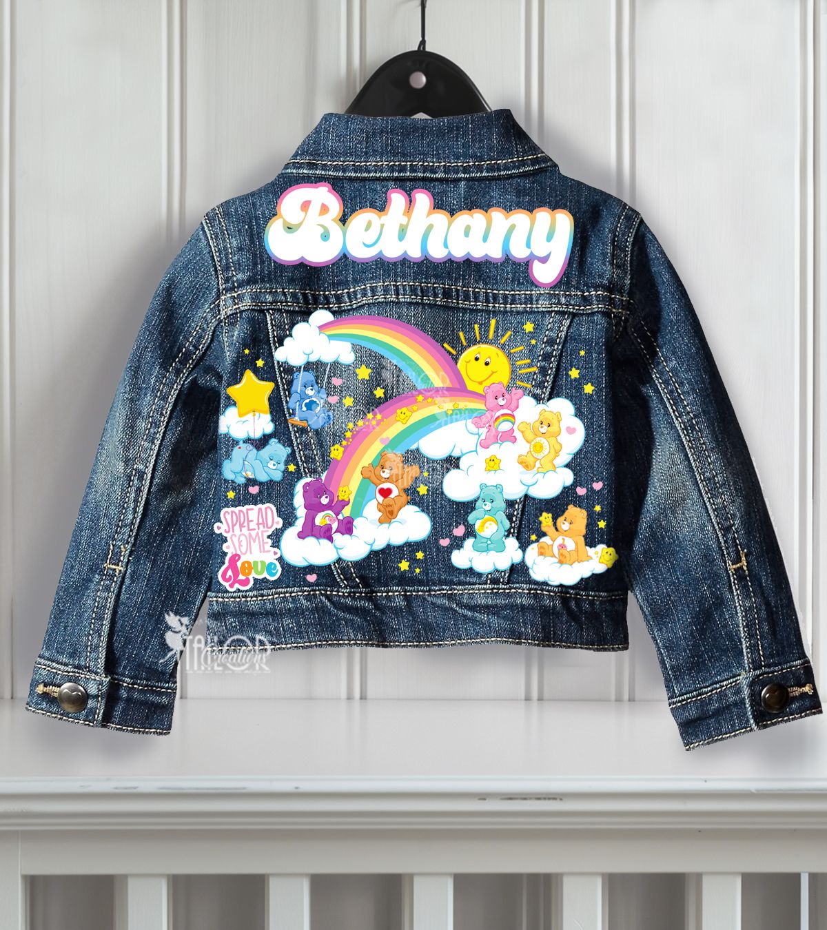Complete the look with our Custom Care Bears Birthday Outfits and denim jackets, each sold separately. The perfect finishing touch for a day filled with color, love, and cheer.