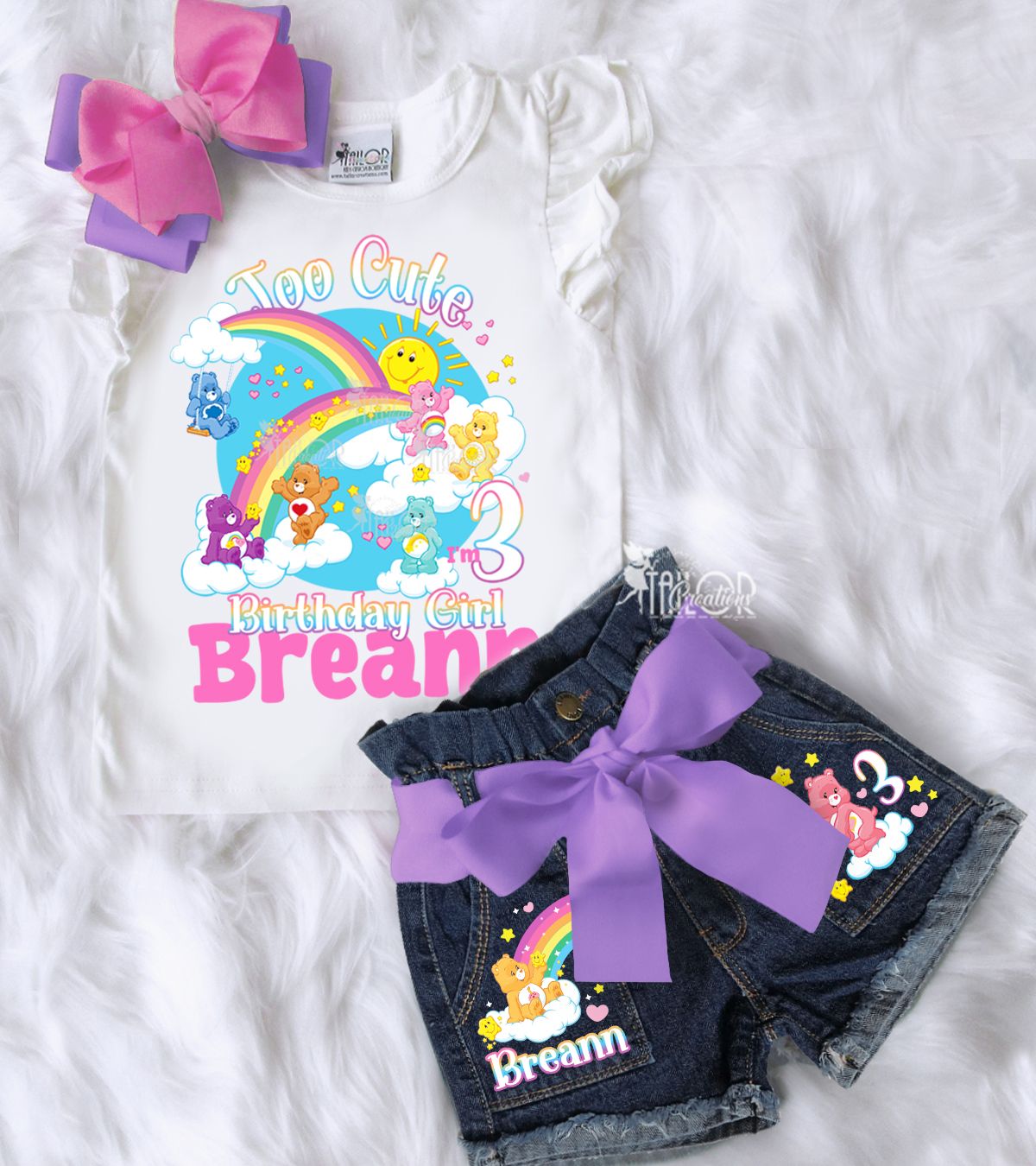 Complete the look with our Custom Care Bears Birthday Outfits and denim jackets, each sold separately. The perfect finishing touch for a day filled with color, love, and cheer.