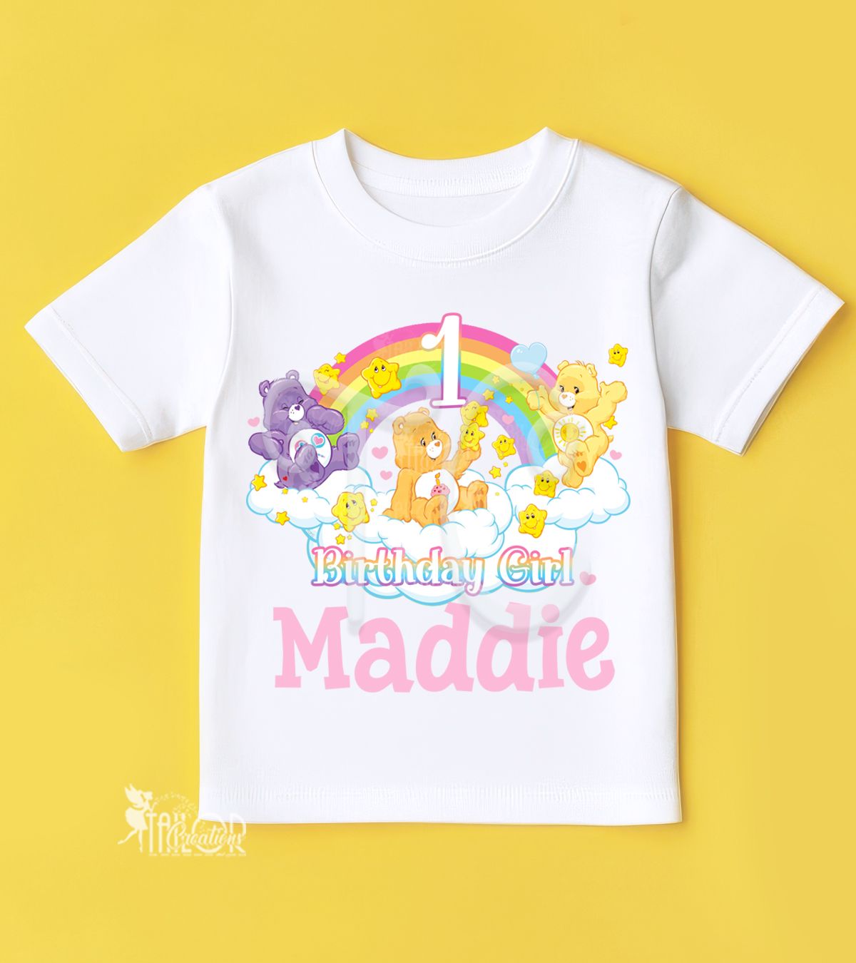 Perfect for a Care Bears themed birthday party, first birthday cake smash photoshoot, half birthday, special school event, or as a thoughtful Care Bears birthday gift. This sweet and colorful tee is designed to make your child’s celebration extra special. Personalized with your child’s name, age, or any wording of your choice. Adding a truly magical and heartfelt touch to their big day.