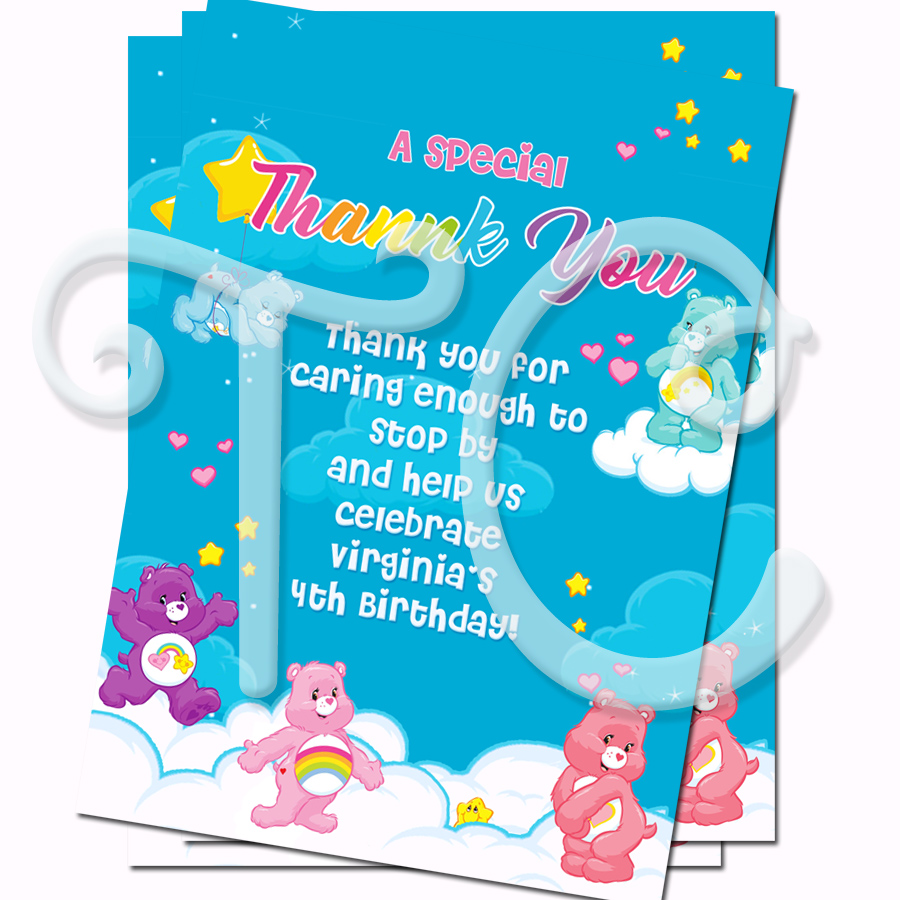 Care Bears Thank You Cards - Care Bears Birthday Party Custom Cards