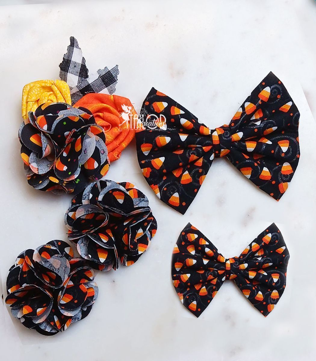 Candy Corn Halloween Hair Bow Clip, Candy Corn Pom-Pom Pigtail Hair Ties, Baby Candy Corn Halloween Bow Headband