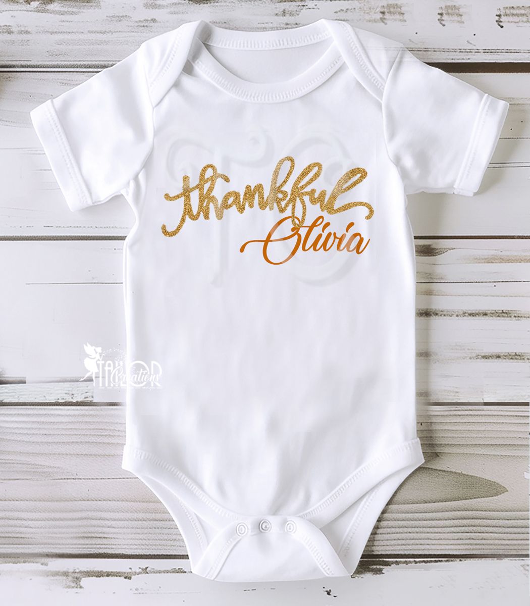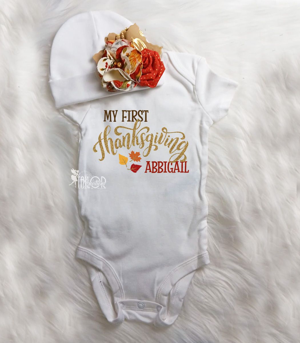 Whether you're celebrating her first Thanksgiving or just capturing those cozy autumn memories, this custom outfit blends comfort, cuteness, and seasonal charm. Choose your preferred wording and personalization to make it a one-of-a-kind keepsake you’ll treasure for years to come.