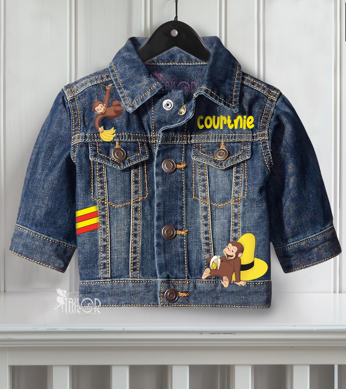 Curious George Custom Denim Jacket - Monkey Name Jean Denim Jacket Baby/Toddler/Kids