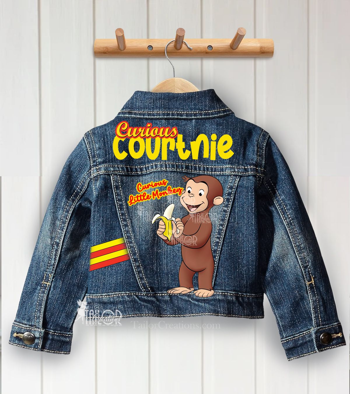Complete the look with our custom matching Curious George Jean Jackets and accessories, sold separately.