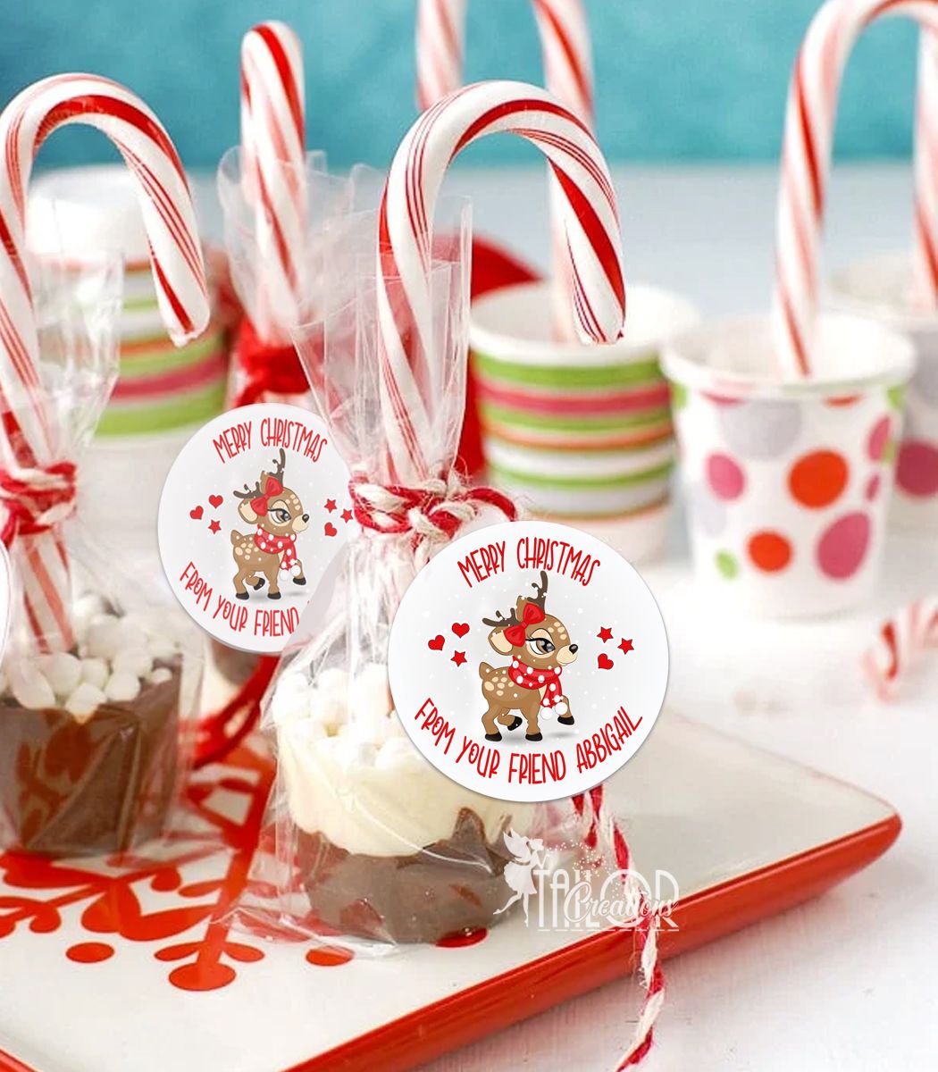 ❤️ Our Cute Custom Reindeer Holiday Gift Tag Sticker Labels offer a unique and personalized way to add charm to any holiday giveaway. Perfect for use as gift tags on Christmas presents, cupcake toppers, envelope seals on holiday greeting cards, and Christmas party invitations, these stickers bring festive cheer to every occasion.