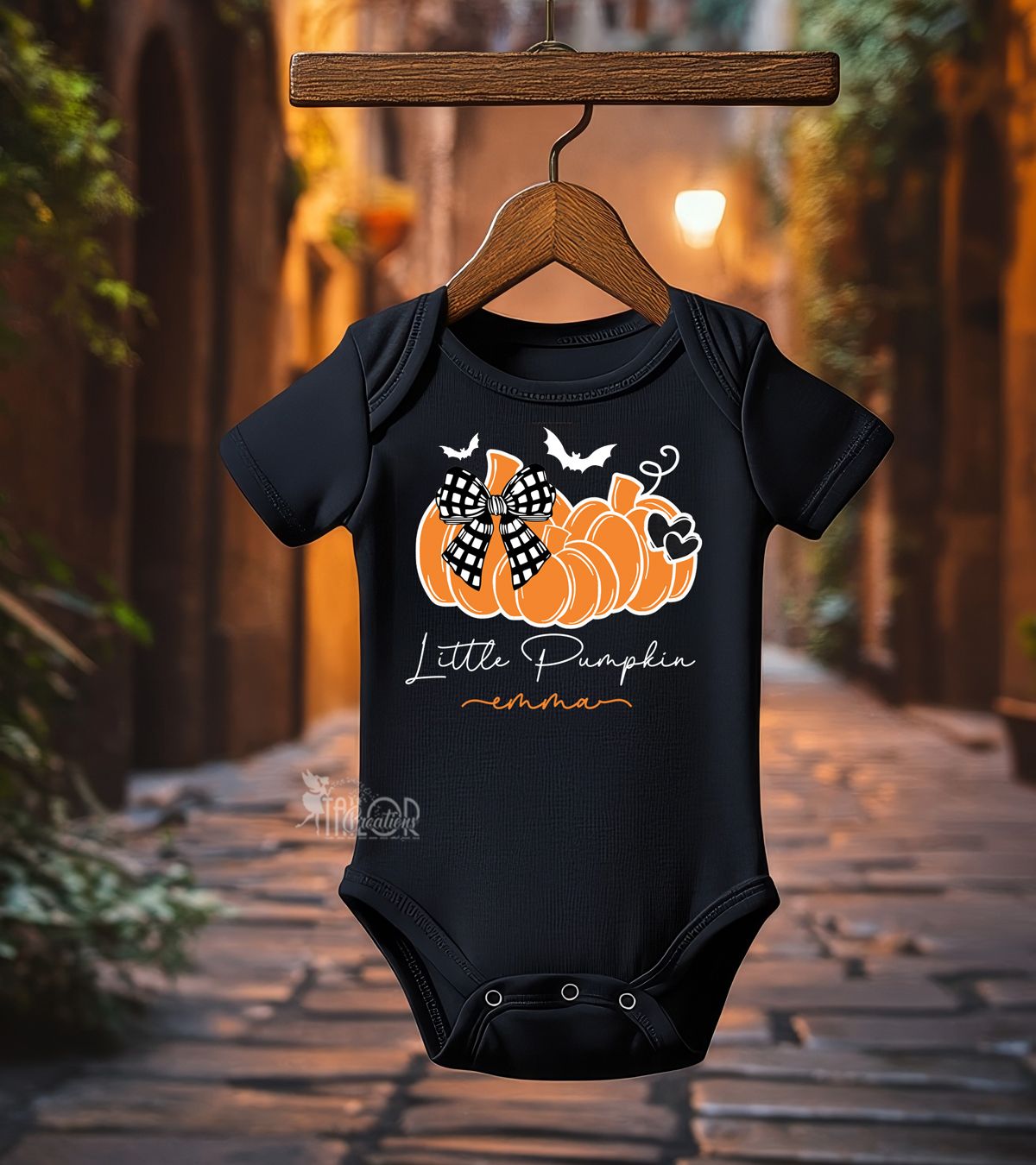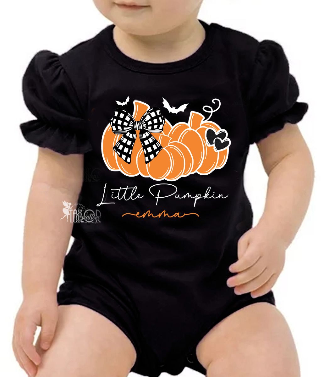 Dress your little one in festive fall style with our Little Pumpkin Custom Halloween Romper or Bodysuit Outfit for Baby and Toddler Girls.