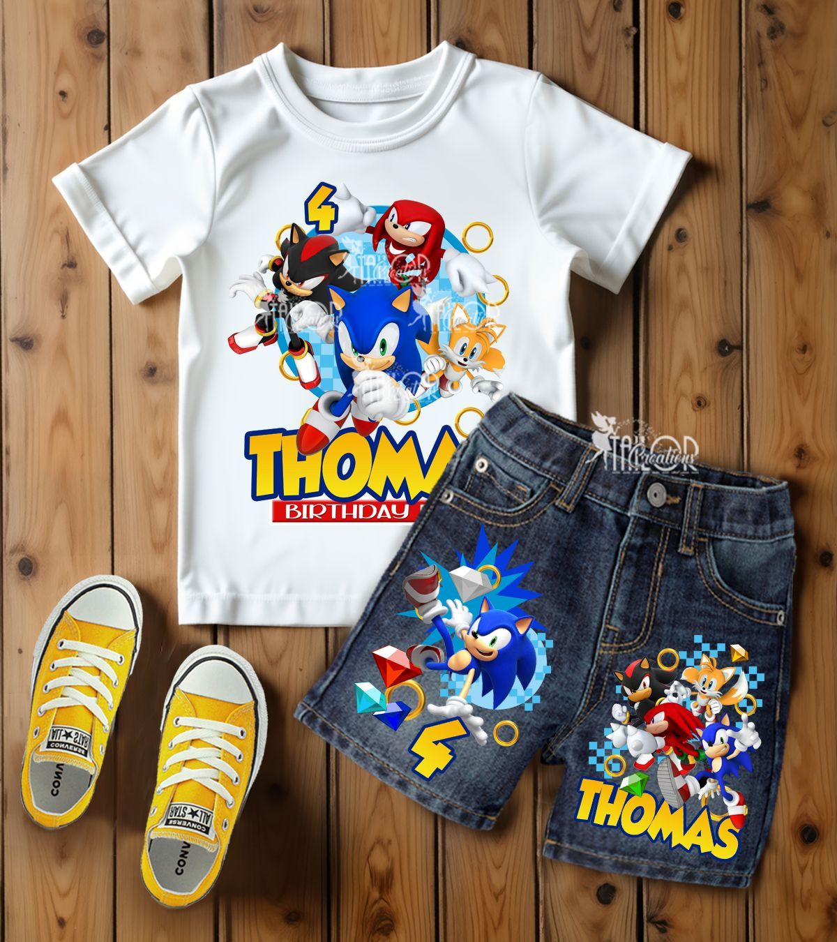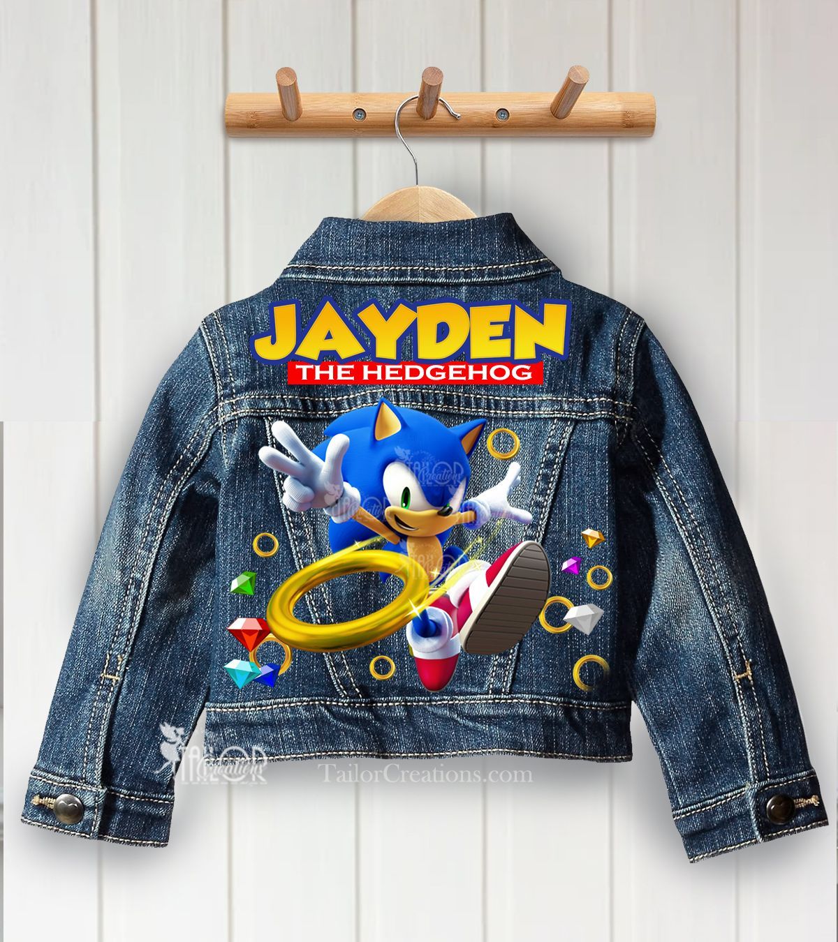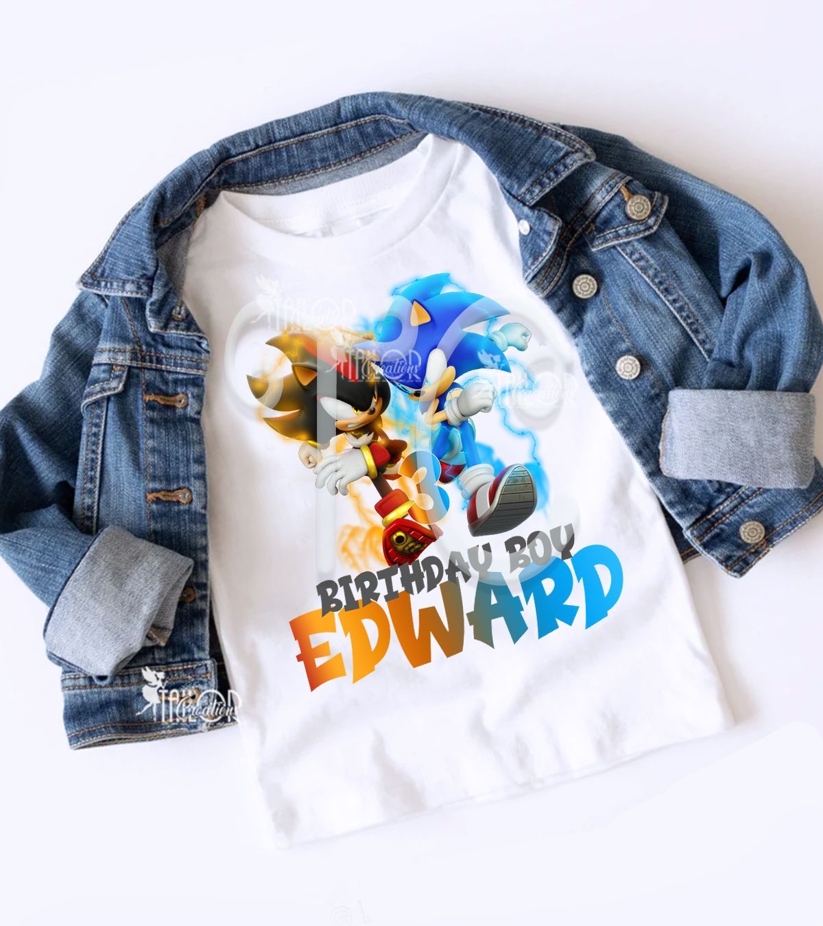 🩷 Step into the fast and adventurous world of Sonic the Hedgehog with these exclusive custom denim jeans inspired by everyone’s favorite blue speedster! Designed for fans of the action-packed and energetic hero, choose from your choice of jeans or overalls. Each piece is uniquely designed and beautifully embellished with vibrant Sonic-themed graphics, front and back, and personalized with your child’s name, age, or any wording of your choice for that extra touch of fun and flair.