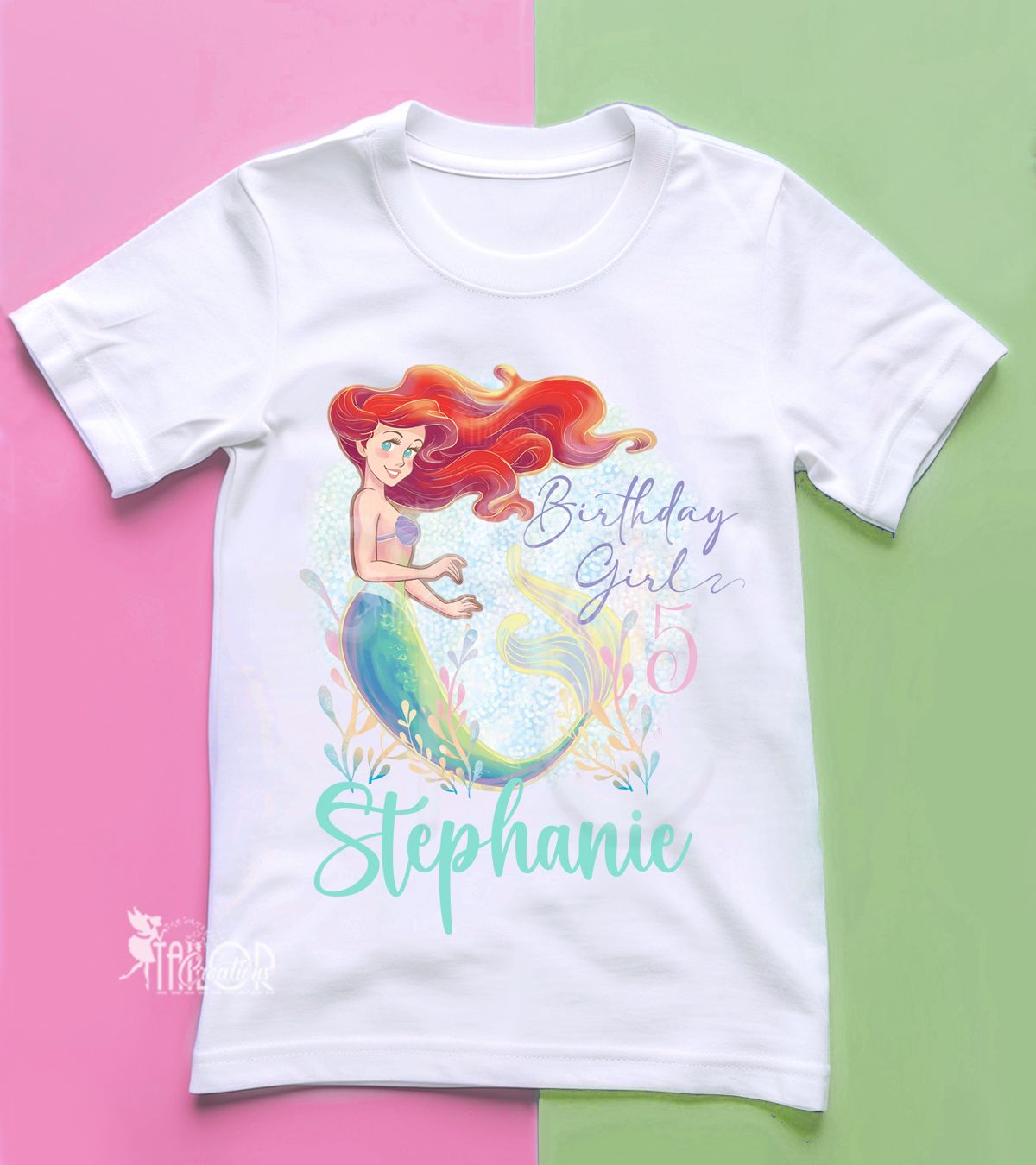 Ariel Little Mermaid Birthday Tee Shirt - Disney Princess Ariel Mermaid Birthday Outfit