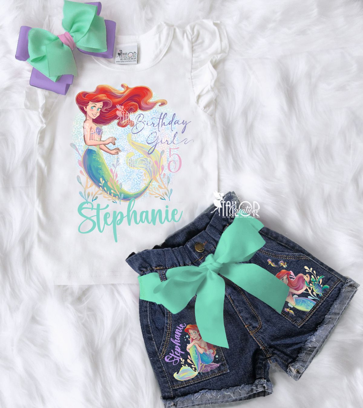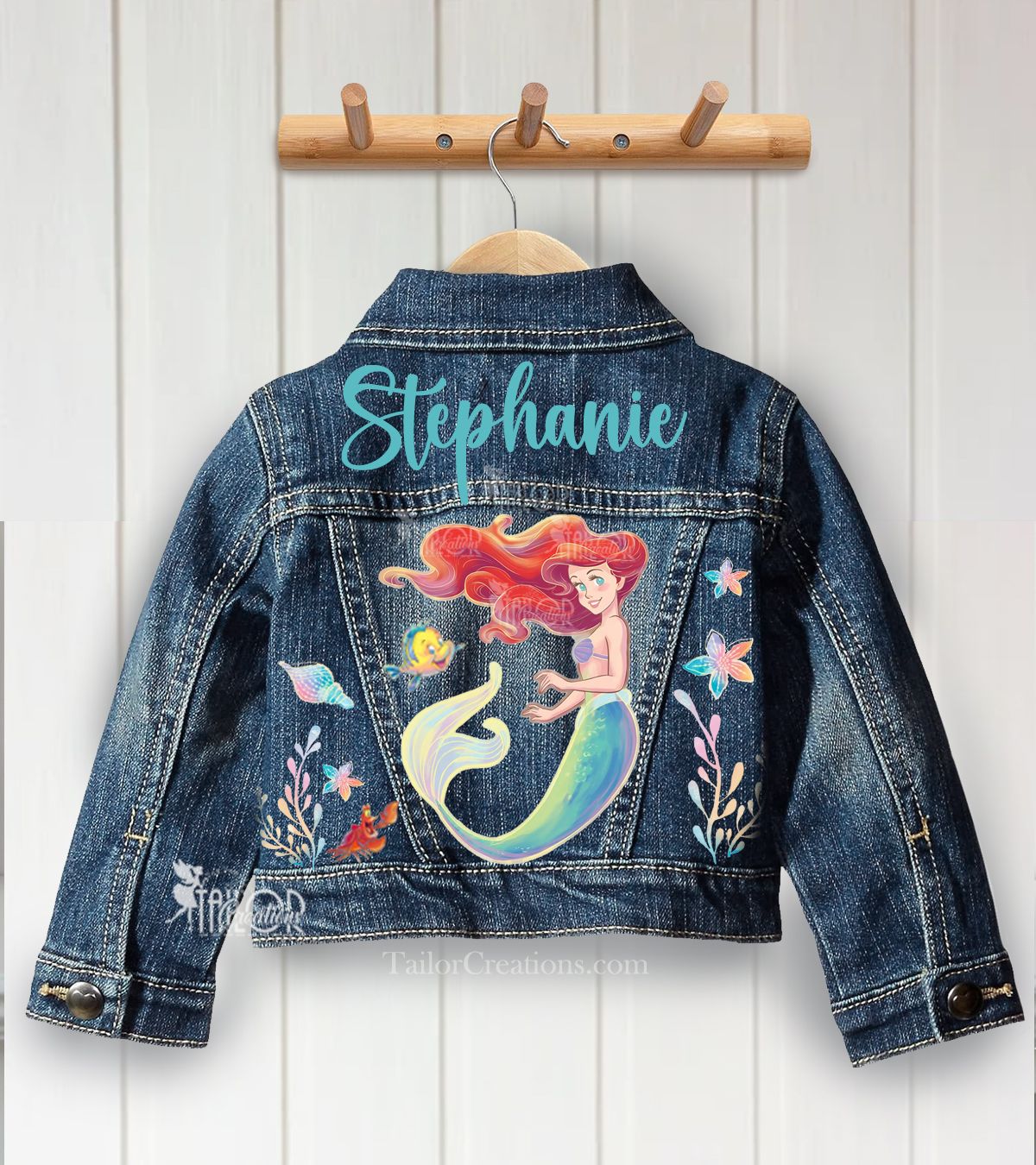 Custom Little Mermaid birthday outfits and denim jackets are also available and sold separately.