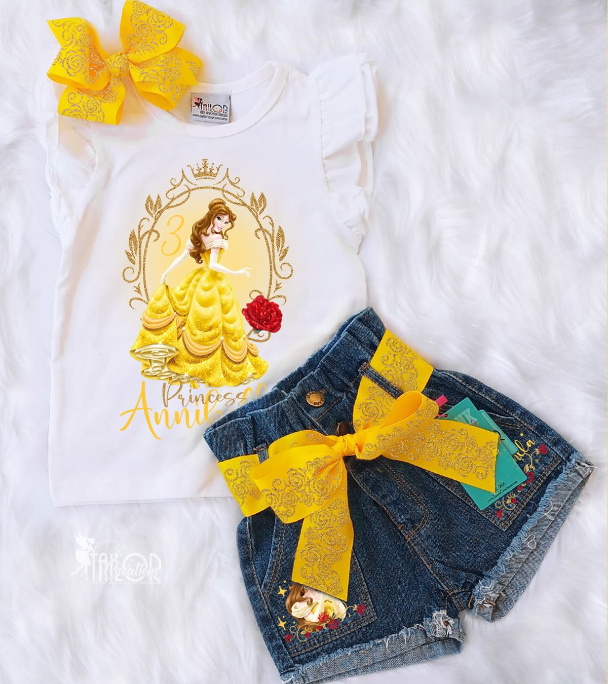 Disney Princess Belle Birthday Tee Bodysuit -Disney Princess Belle First Birthday Outfit