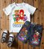 This outfit features a personalized Dino Ranch short sleeve top (with your choice of any shirt decal in our store), designed with a bright, adventurous western-inspired Dino Ranch theme inspired by the hit Dino Ranch series. Paired with your choice of denim shorts, overalls, or jeans, each bottom showcases a personalized Dino Ranch–themed layout styled from front to back — adding a bold and fashionable flair that’s guaranteed to make him shine on his special day.