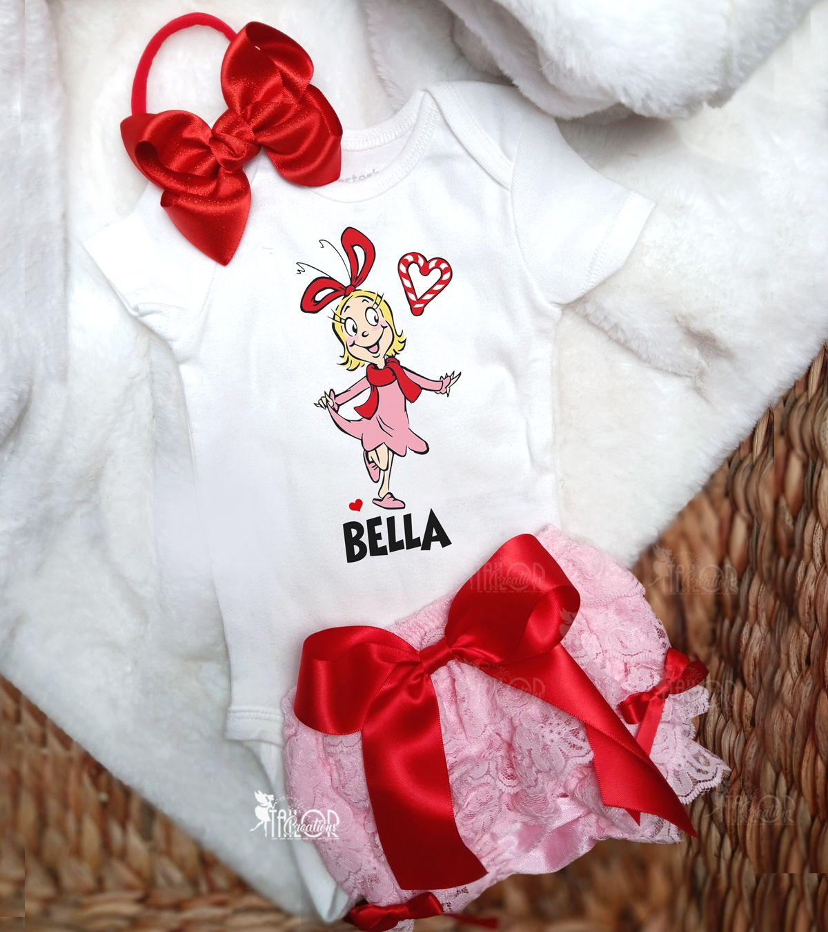 Custom Cindy Lou Who birthday outfits and sweet accessories like denim jackets and holiday bows are also available and sold separately.