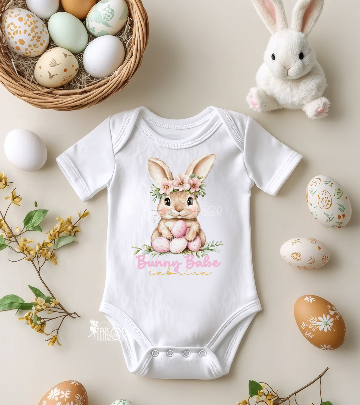 🩷 Your little bunny will be ready to hop, celebrate, and shine in this adorable Watercolor Easter Bunny Baby Outfit! Perfect for Easter celebrations, this outfit blends sweet springtime charm with boutique-quality craftsmanship. With its pastel colors and delicate watercolor bunny decal, it’s the ultimate Easter look for your little one.
