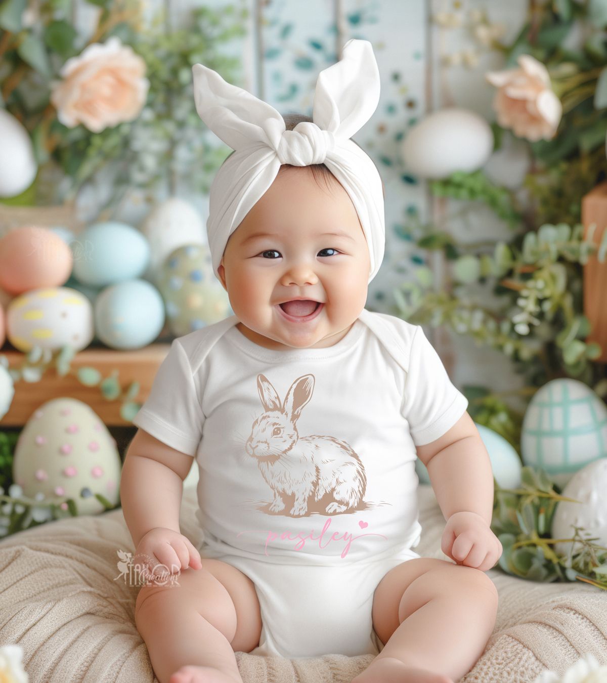 Easter Bunny Rabbit Custom Baby Girl Onesie Bodysuit - Easter Outfit Ideas for Girls