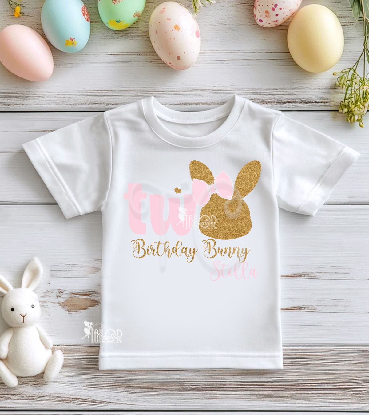 Easter Bunny Birthday Pastel Personalized Glitter Birthday Shirt - Easter Birthday Party Outfit Ideas