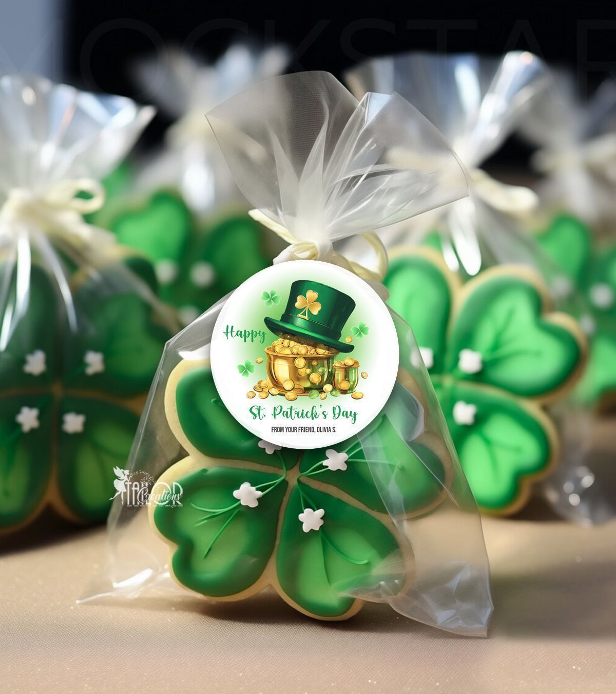 Happy St Patricks Day Irish Pot of Gold Custom Gift Tag Labels Favors Stickers Party Supplies Jar Paddys Candy Goody Bag