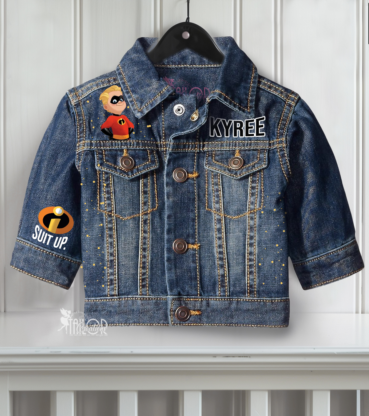 ⭐ Suit up your little hero and add high-speed adventure to their wardrobe with our Custom Personalized Incredibles Dash Denim Jacket! Perfect for toddlers, babies, and kids who love the action-packed world of The Incredibles, this custom jean jacket brings Dash Parr’s super speed energy to life in a bold and stylish way.