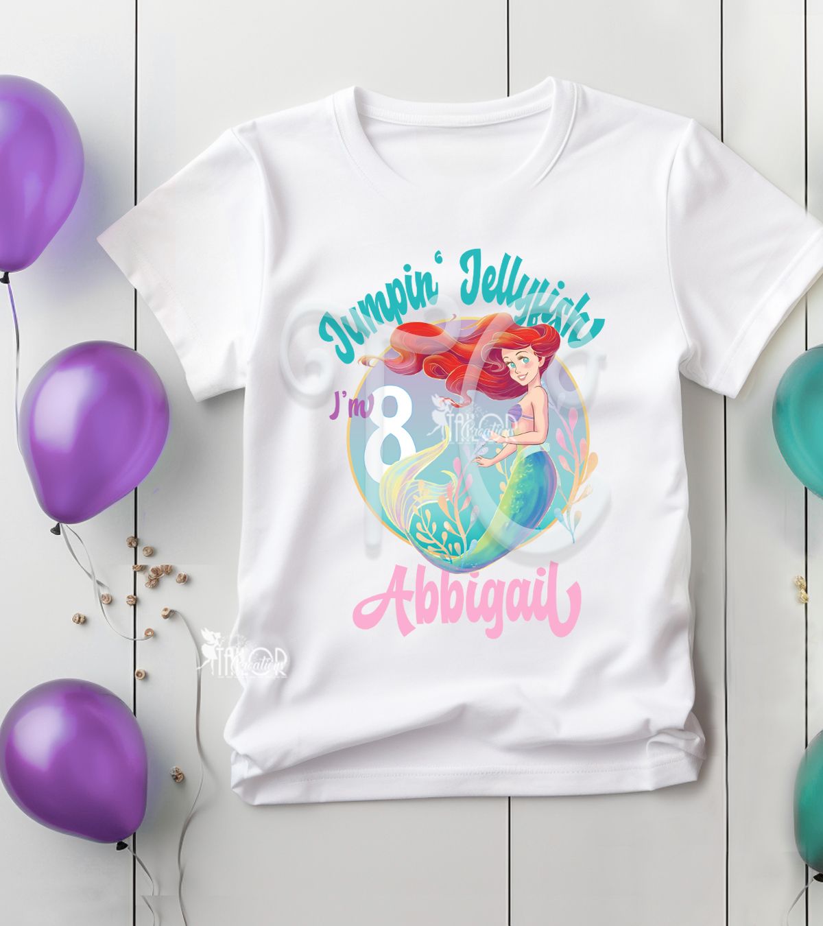 🩷 Jumpin' Jellyfish! Your Little Mermaid is sure to Shellabrate with this personalized Little Mermaid Ariel Theme Birthday Outfit! Perfect for a Little Mermaid-themed celebration, this outfit features Ariel’s iconic Under the Sea style with a fun and playful twist. From the vibrant blues and greens to the seashell and starfish details, your child will feel like a true mermaid in this adorable birthday look. This charming Little Mermaid outfit features an adorable girls’ puff sleeve personalized top, paired with trendy seashell-inspired shorts, beautifully embellished with your child’s name and enchanting Little Mermaid designs from front to back. The look is completed with a cute grosgrain ribbon belt and a matching accessory to tie it all together.