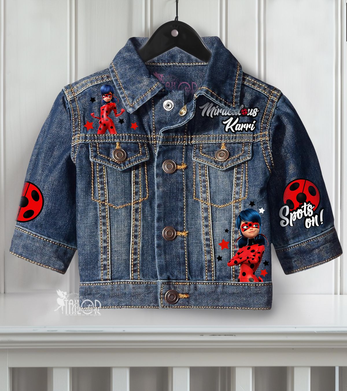 🩷 Add a touch of superhero style to your little heroes wardrobe with our kids Personalized Miraculous Ladybug Jean Jacket! Perfect fir girls who love Marinette and her magical adventures. This adorable Ladybug denim jacket is a must-have for fans of the Miraculous Ladybug and Cat Noir series.