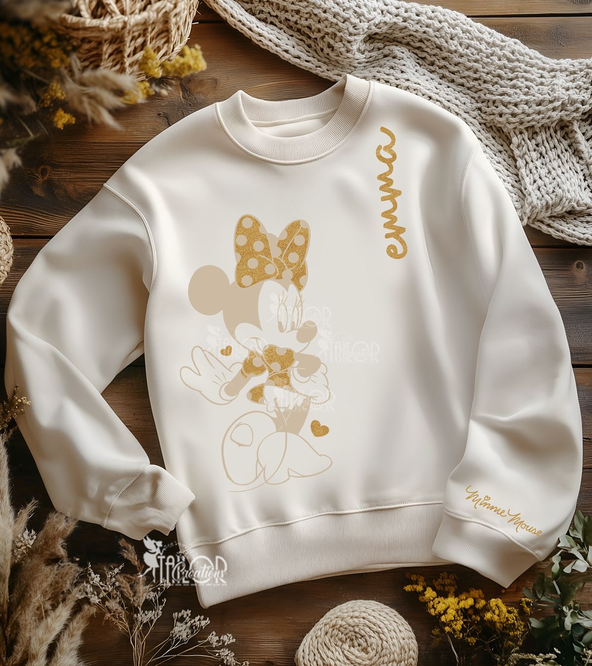 🤎 Champagne Gold Glitter Minnie Mouse Disney Sweatshirt – Custom Minnie Outfit for Girls