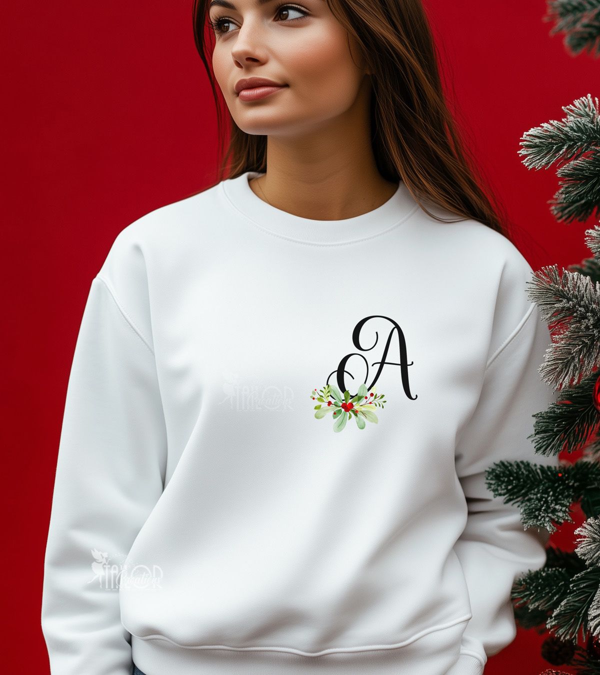 ❤️ Celebrate the season in style with our Christmas Berries Watercolor Initial Monogram Sweatshirt. Featuring a hand-painted watercolor design of festive holly, red berries, and elegant script initial. This elegant and simple design stands out in a unique way. Customized with your first or last initial to create a one-of-a-kind Christmas logo-style sweatshirt that’s uniquely yours.