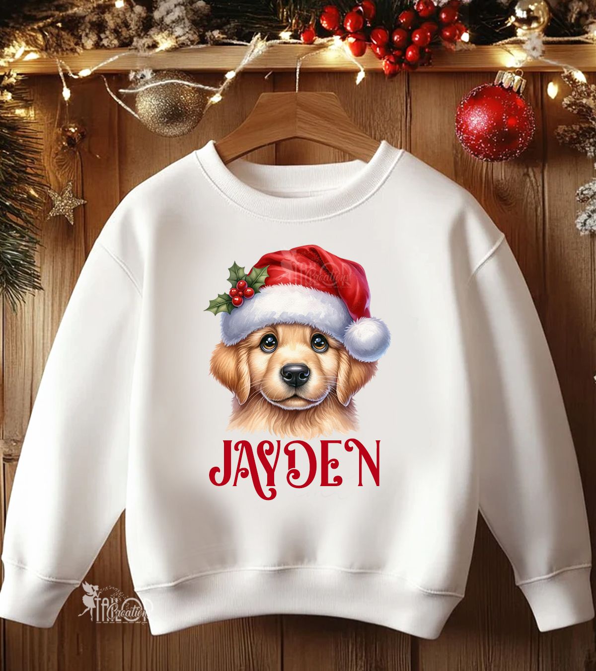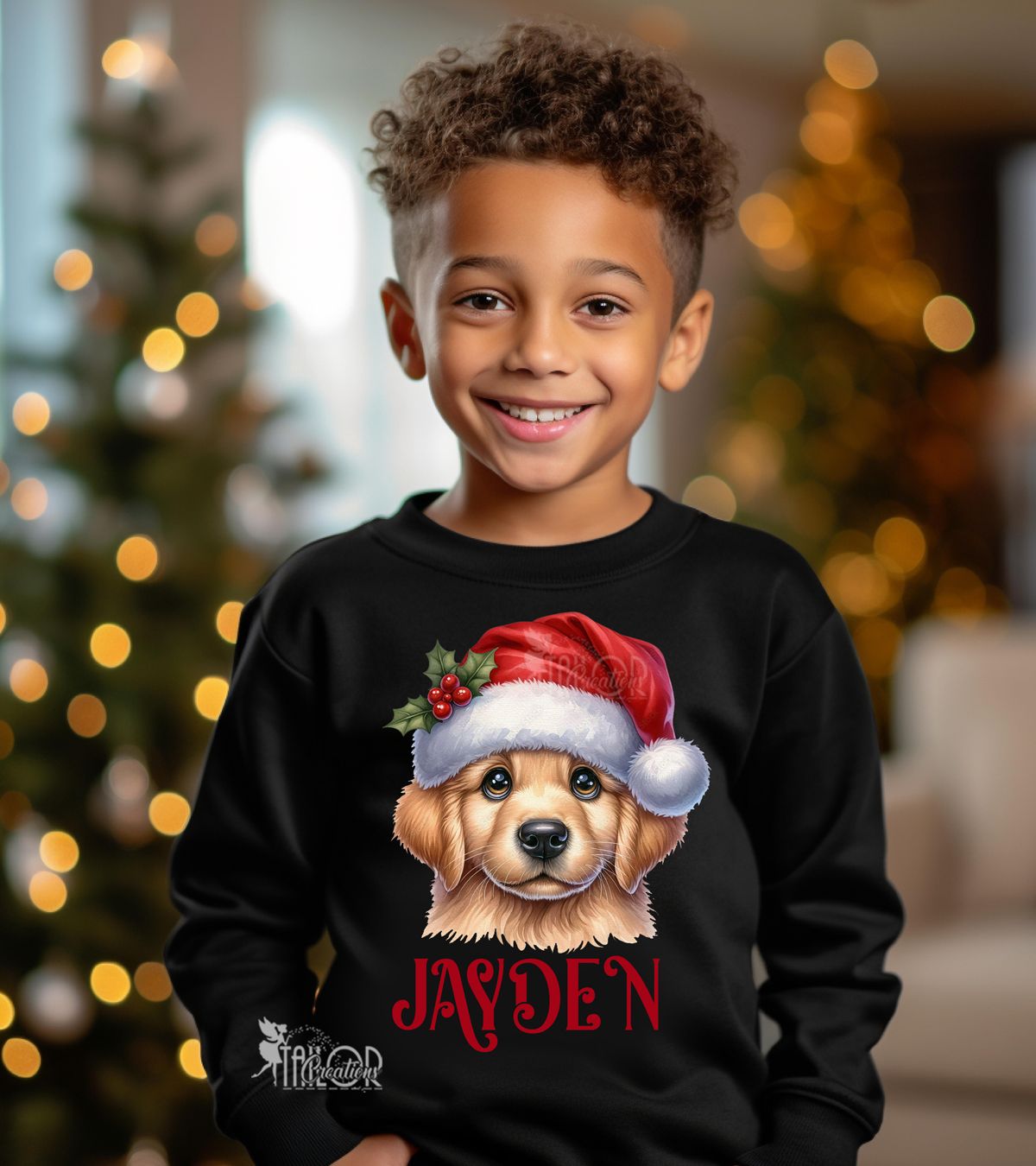 Golden Retriever Puppy Dog Custom Name Tee Shirt for Kids - Christmas Dog Sweatshirt for Toddler