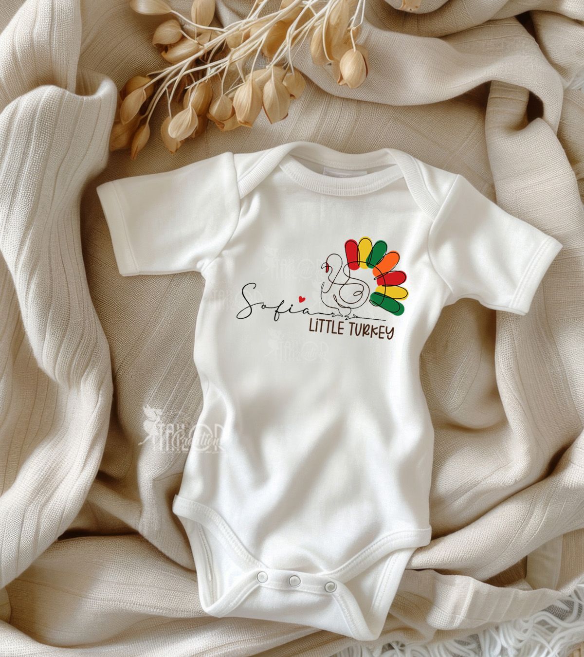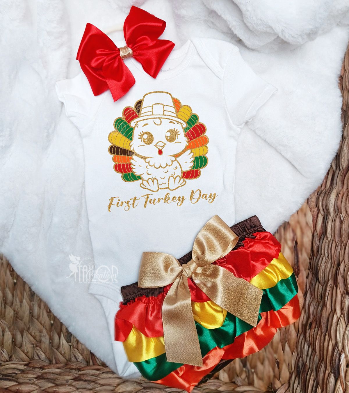 Whether you're celebrating a First Turkey Day, planning an adorable Thanksgiving photoshoot, or gifting a custom Little Turkey outfit for a baby girl, this handmade set is crafted with love, comfort, and plenty of harvest cheer!