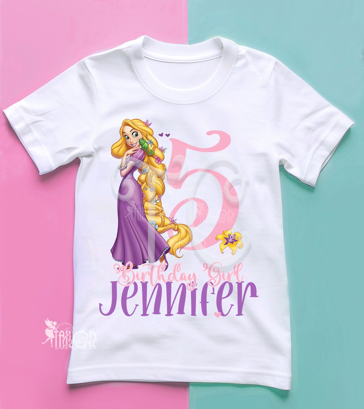 Let Down Your Hair and Light Up the Day with this Enchanting Personalized Rapunzel Birthday T-Shirt