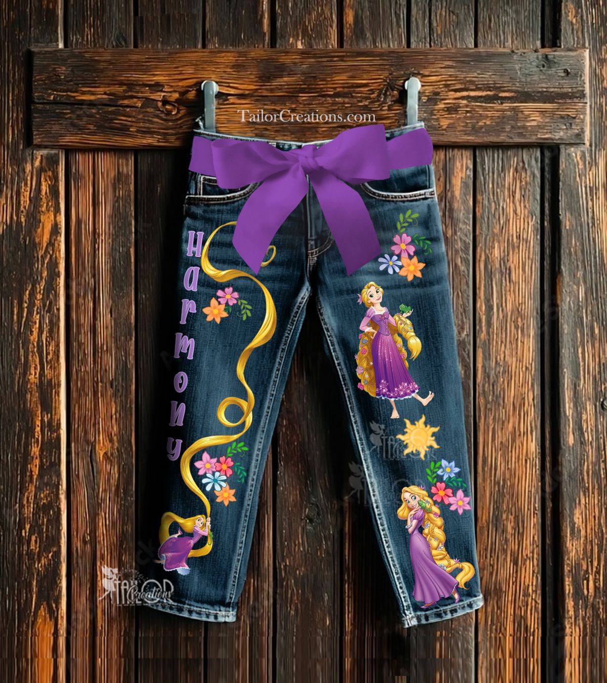 Custom Rapunzel birthday outfits and denim jackets are also available and sold separately. The perfect finishing touch for your little one’s big moment in the spotlight.