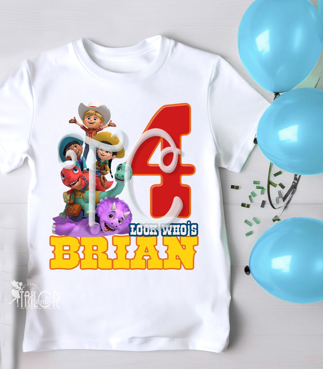Whether you're planning a Dino Ranch themed birthday party, a cake smash photo session, or a magical family trip to Disneyland or Walt Disney World, this personalized shirt helps your child feel like part of the ranch crew alongside their favorite dino-riding friends. Featuring vibrant colors and playful western-inspired designs, it’s perfect for your little wrangler’s big day.