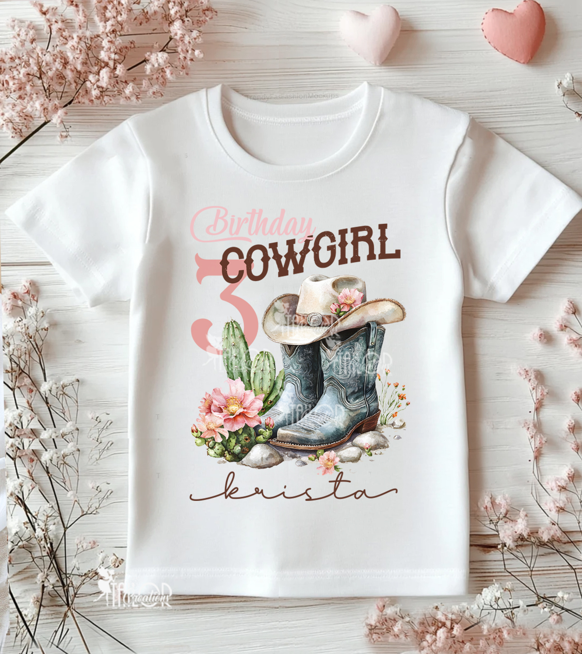 Perfect for a cowgirl-themed birthday party, rodeo celebration, cake smash photoshoot, school event, or as a thoughtful birthday gift. This custom tee adds a soft, stylish, and carefree western touch to any special occasion. Personalize it with your child’s name, age, or a custom phrase to make her day even more memorable.