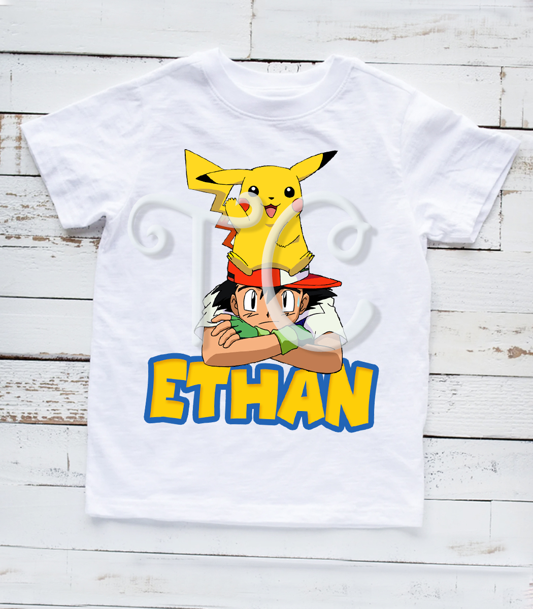 Pokemon Ash and Pikachu Graphic Custom Tee Shirt - Pikemon Custom Tee Shirt Kids