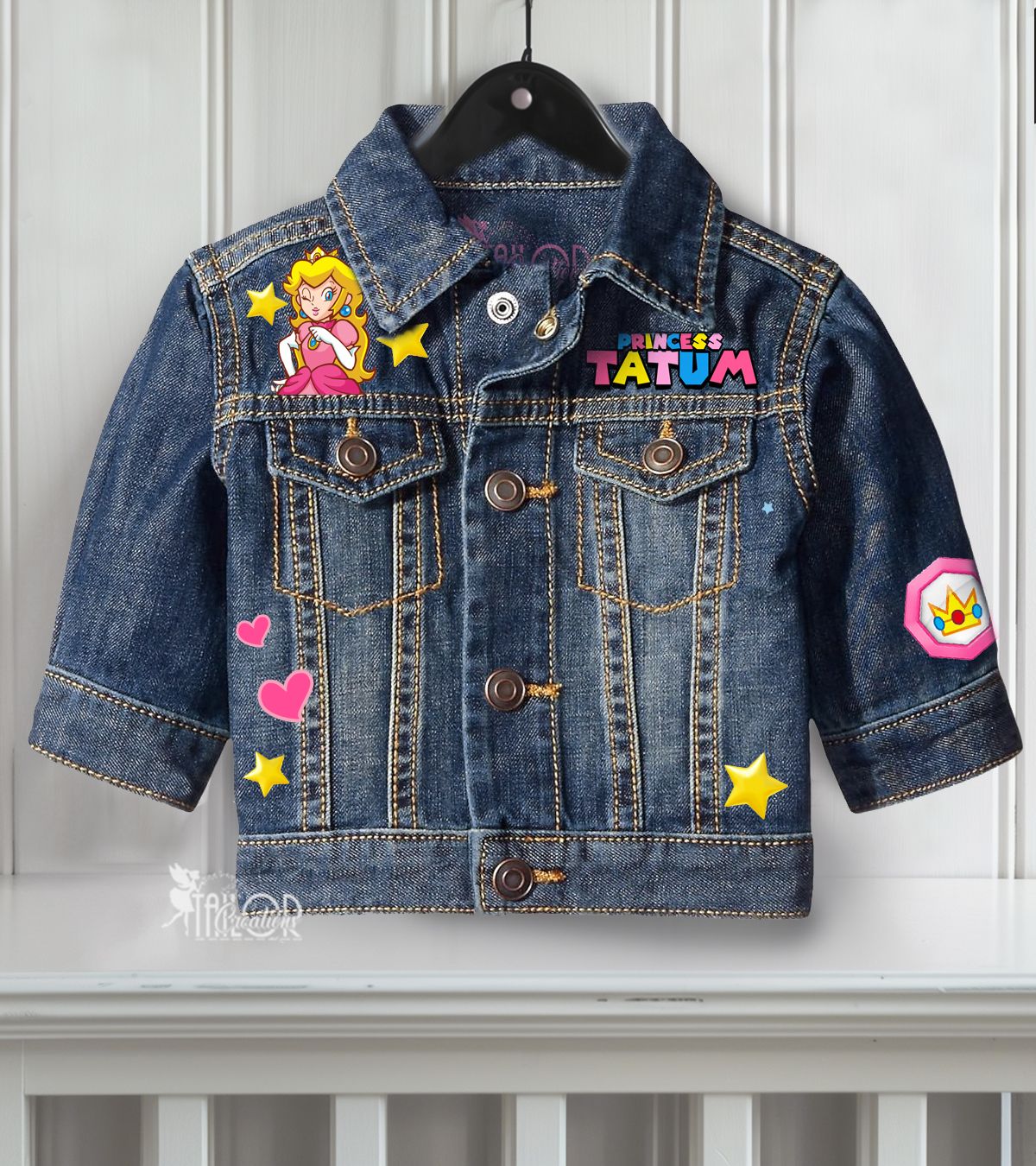 Princess Peach Jean Jacket - Custom Toddler Denim Jacket - Princess Peach Gift Ideas