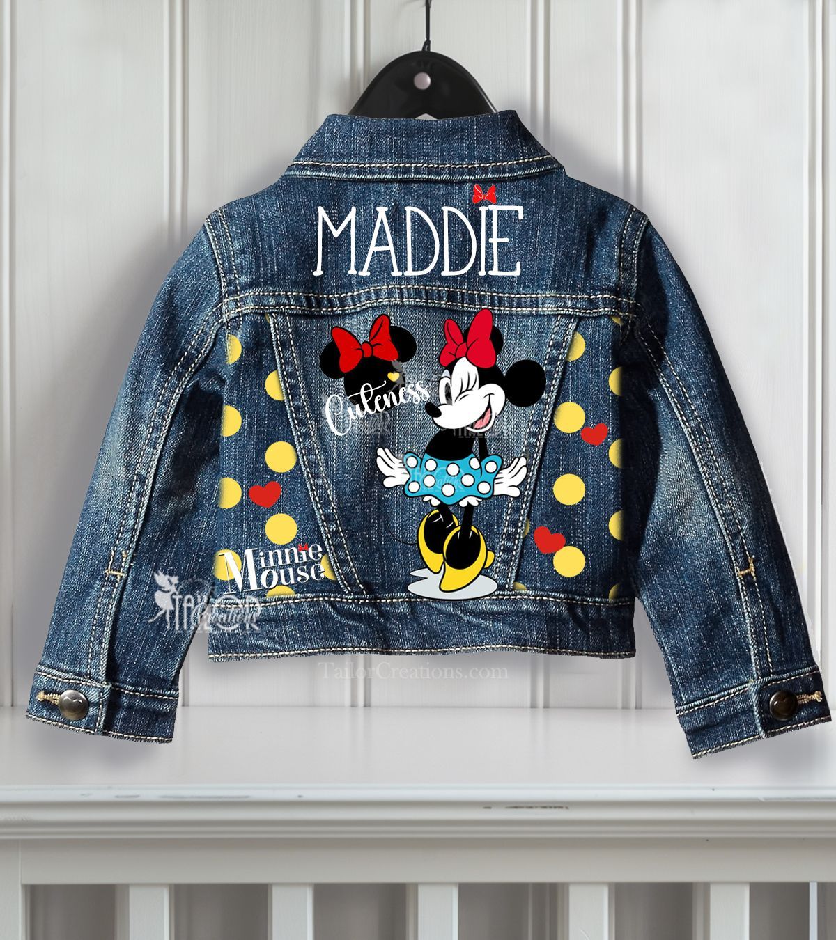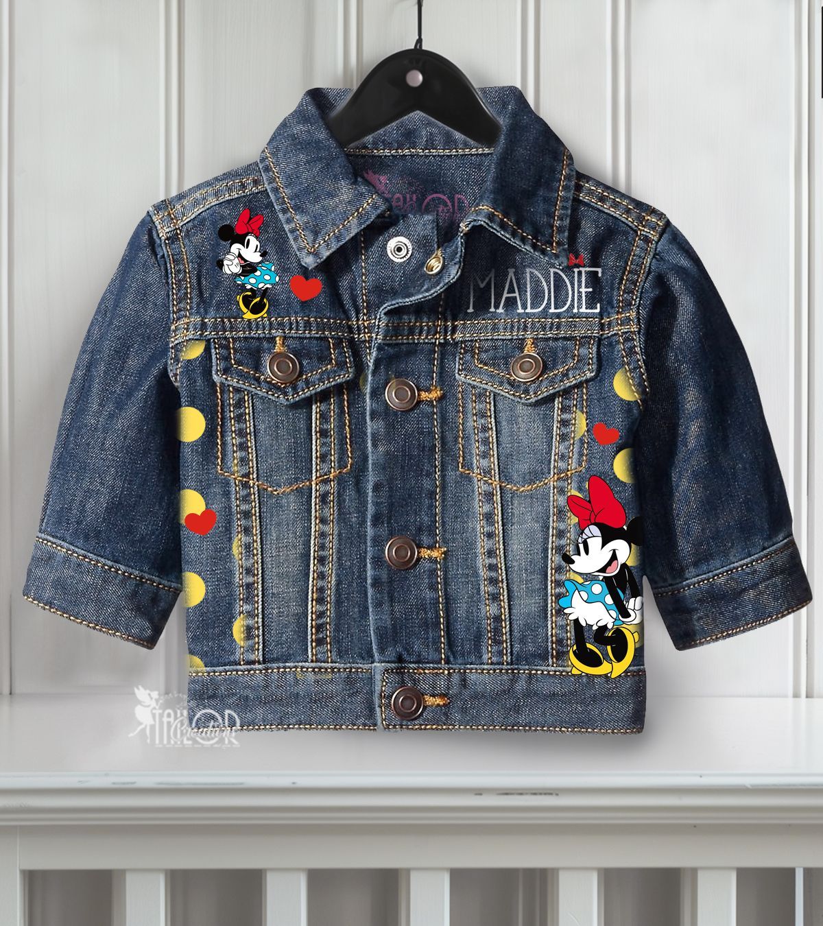 Retro Minnie Mouse Jacket - Disney Custom Name Denim Jacket - Minnie Denim Kids Jacket