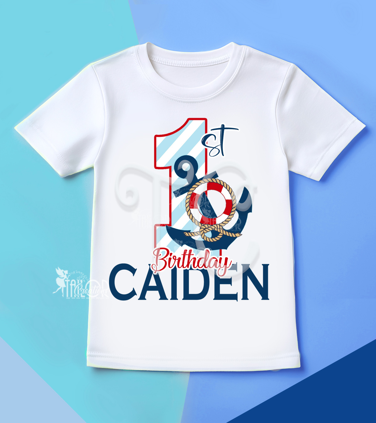 Whether you're planning a sailor-themed birthday party, a cake smash photo session, or a fun family getaway, this personalized shirt helps your little one look the part in true nautical style. Featuring vibrant, ocean-inspired colors and playful sailor details, it’s perfect for your little captain’s big day.