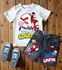 The outfit includes denim bottoms decorated with vibrant Spidey and Friends graphics. Choose from personalized denim shorts, jeans, or overall. Each piece designed front to back with playful superhero details that bring the whole look to life.