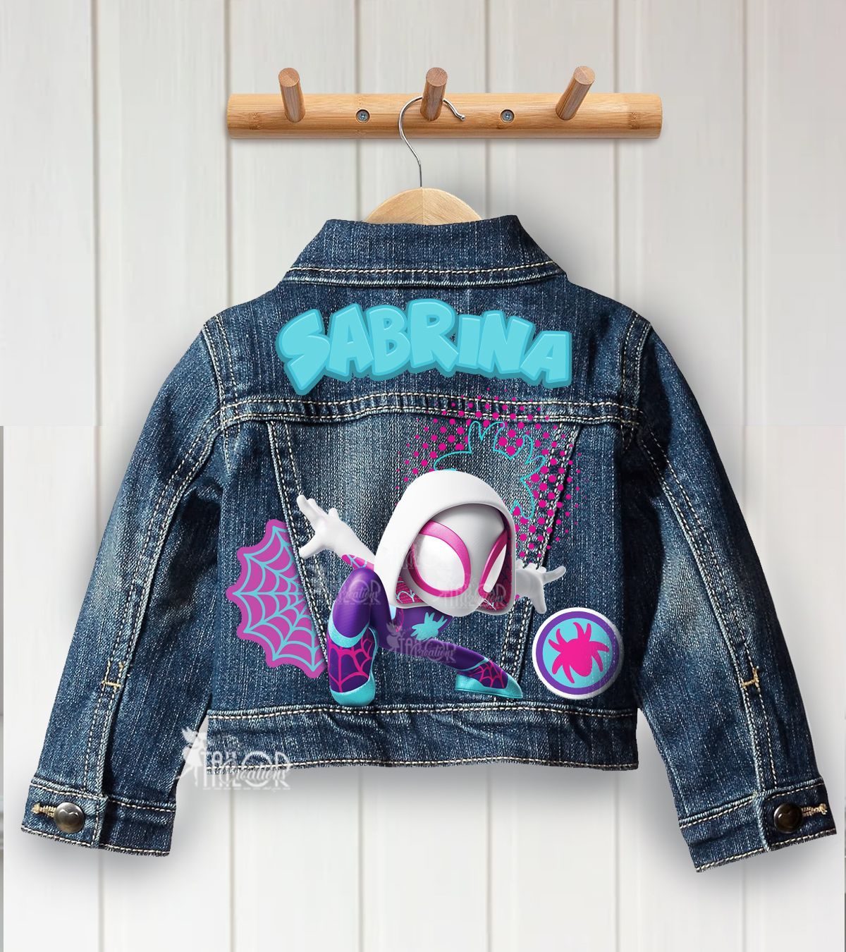 🩷 Step into the thrilling world of Ghost Spider with these exclusive custom denim jeans designed especially for girls. Perfect for fans of the iconic Disney Marvel superhero, choose from your choice of jeans or overalls. Each pair is uniquely designed and beautifully embellished with vibrant Ghost Spider-themed graphics on the front and back, adding that extra flair.