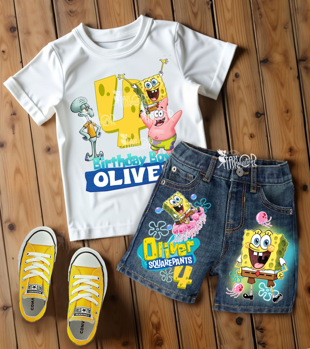 SpongeBob Custom Denim Pants Jeans - Spongebob Birthday Party Outfit Ideas