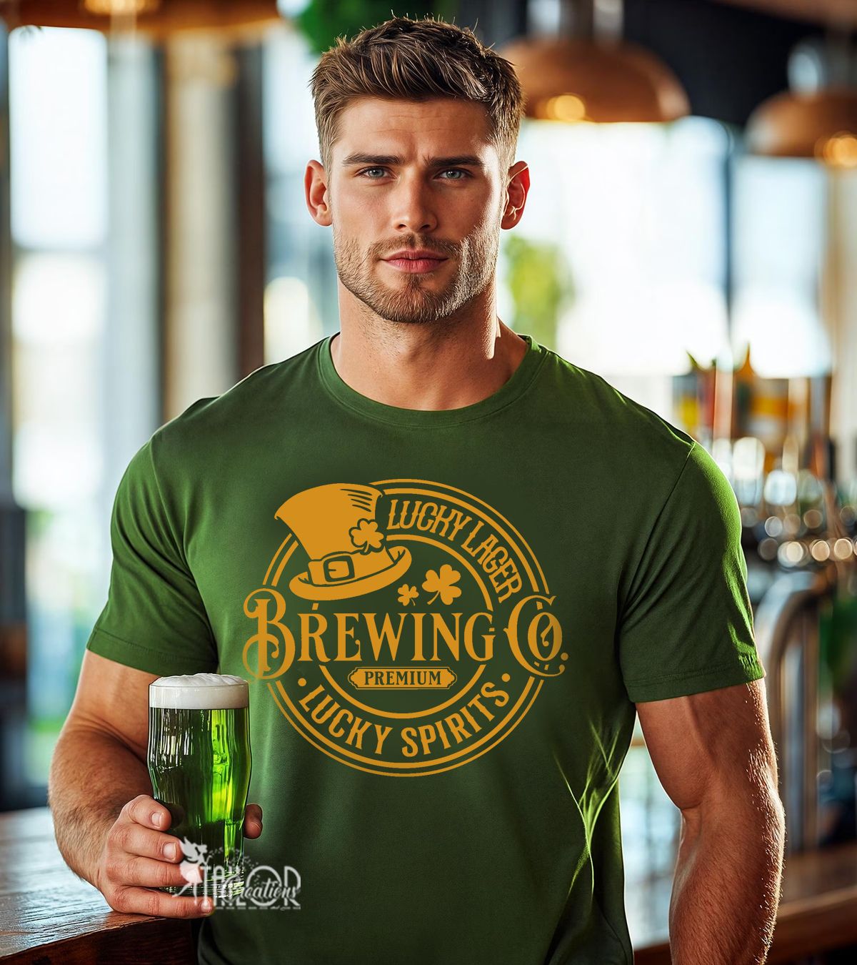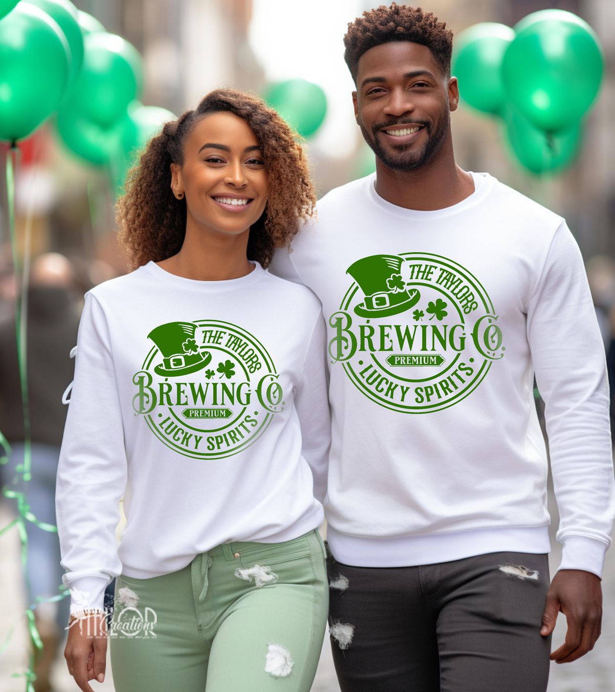 Whether you're heading to a St. Paddy’s Day parade, hosting a party, or raising a pint at your favorite local brewery, this playful “Brewing Co.” inspired design adds the perfect mix of Irish charm and humor to your festive outfit. Designed for couples who love to match (and laugh), it’s a fun way to stand out in the crowd while celebrating together.