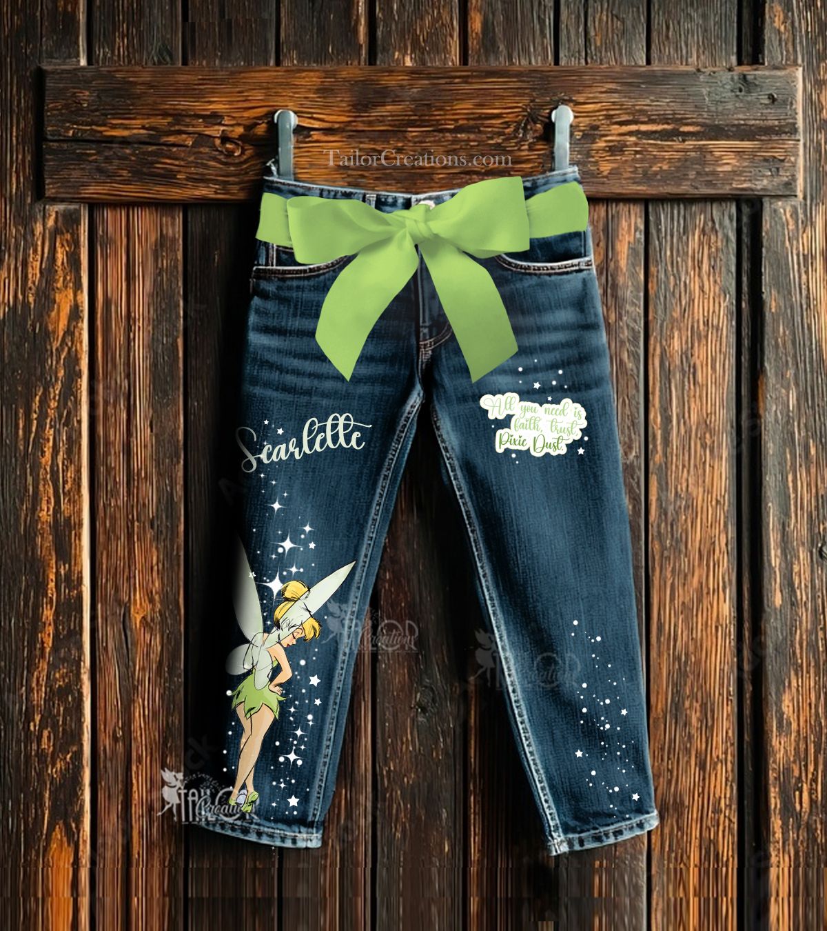 Complete the look with our custom matching Tinker Bell denim jackets and accessories, sold separately, for a pixie-perfect celebration!